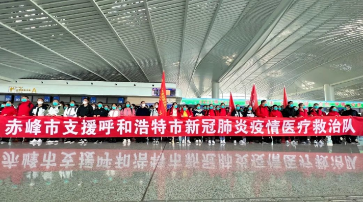 按照自治区指挥部、自治区医疗防控组的有关要求,经赤峰市委、市政府同意,全市202名医务人员主动请缨、迅速集结,组建了3支援助呼和浩特市新冠肺炎疫情医疗救治队,10月7日下午,他们在玉龙机场集结,启程奔赴呼和浩特市。