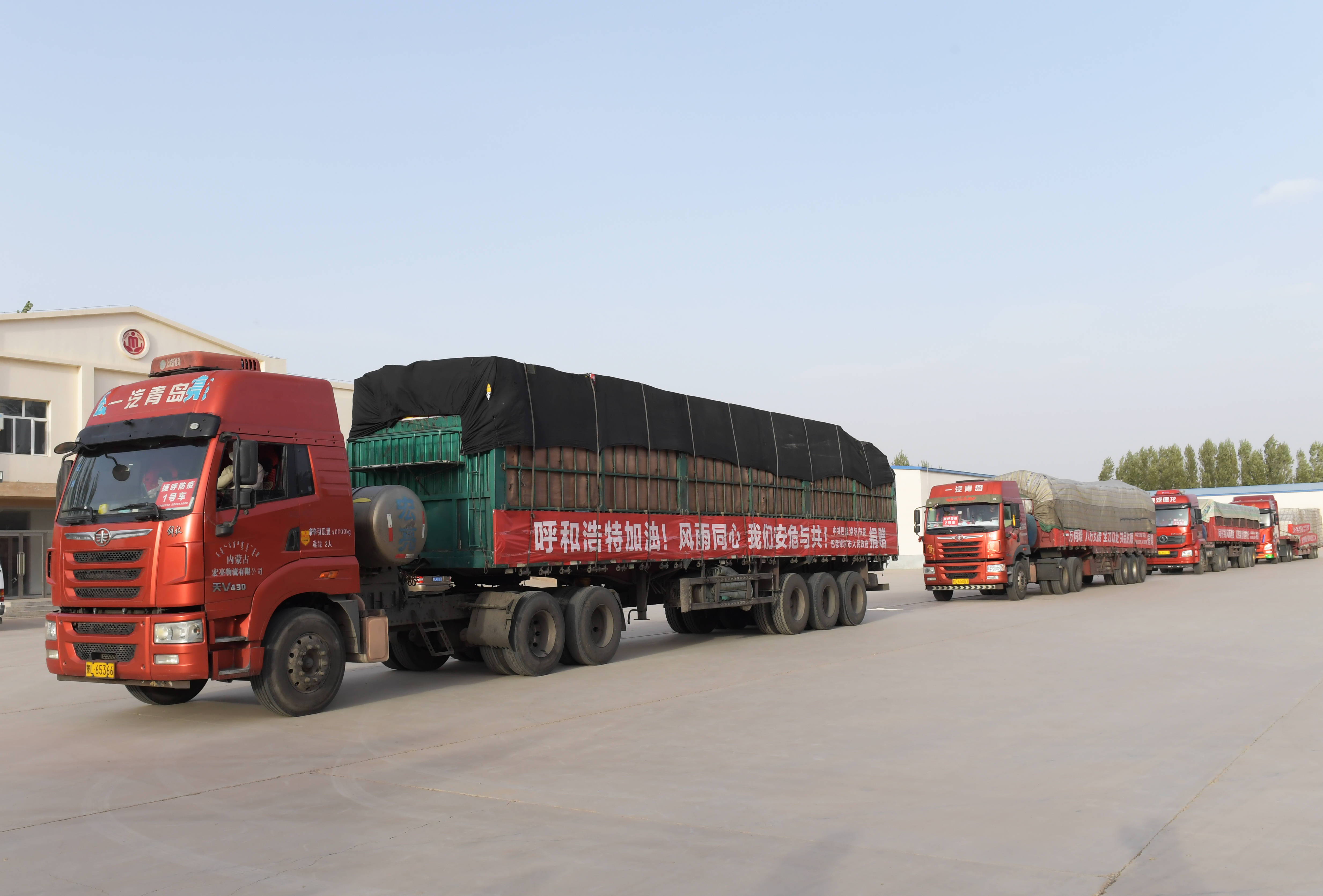 10月7日下午5时许,巴彦淖尔市驰援呼和浩特市抗疫物资发车仪式在巴彦淖尔市救灾物资储备库举行,4辆满载生活物资的大型运输车驶往呼和浩特市。