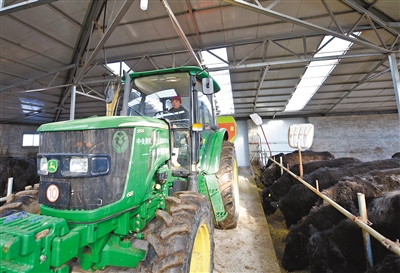 时值一年一度的休牧期,锡林郭勒盟东乌珠穆沁旗呼热图淖尔苏木金牧畜牧业专业合作社成员们正在牛棚里忙着为牛群喂饲草料。