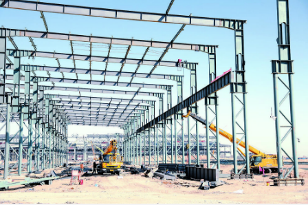日前,走进包头市固阳县金山工业园区建设工地,只见货车、铲车、挖机来回穿梭;钢结构网架拼装现场,焊工忙碌,火花四溅……整个园区呈现出一派热气腾腾、欣欣向荣的场面。