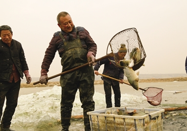 1月11日,伴随着鞭炮声和渔民的齐声吆喝声,托县1415亩黄河鱼正式破冰开网,开启今年第一个丰收时节。