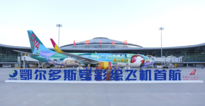 1月7日上午,中国联合航空有限公司鄂尔多斯运营基地揭牌暨“鄂尔多斯号”彩绘飞机首航仪式在鄂尔多斯机场举行。期待已久的全球首架以草原绿色系为配色主题的彩绘飞机——“鄂尔多斯号”在鄂尔多斯机场正式亮相。