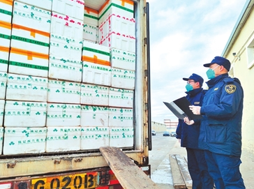 二连浩特口岸是中蒙最大陆路口岸。自中蒙农产品“绿色通道”开通以来,二连海关推行果蔬“优先申报、优先查验、优先核放”作业模式,实现生鲜果蔬当天申报当天放行。