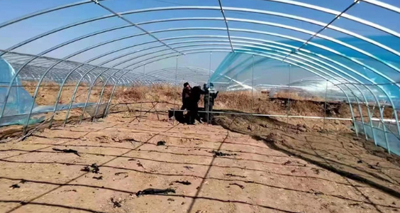 入冬以来尽管天气有些寒冷,但在五原县套海镇现代农业设施产业园的钢架拱棚搭建现场却是一派热火朝天的劳动场面。村民们趁着农闲时节打坑、埋设地锚、撑杆、立架,加紧时间搭建拱棚骨架,为明年贝贝南瓜的丰产增收做足准备。