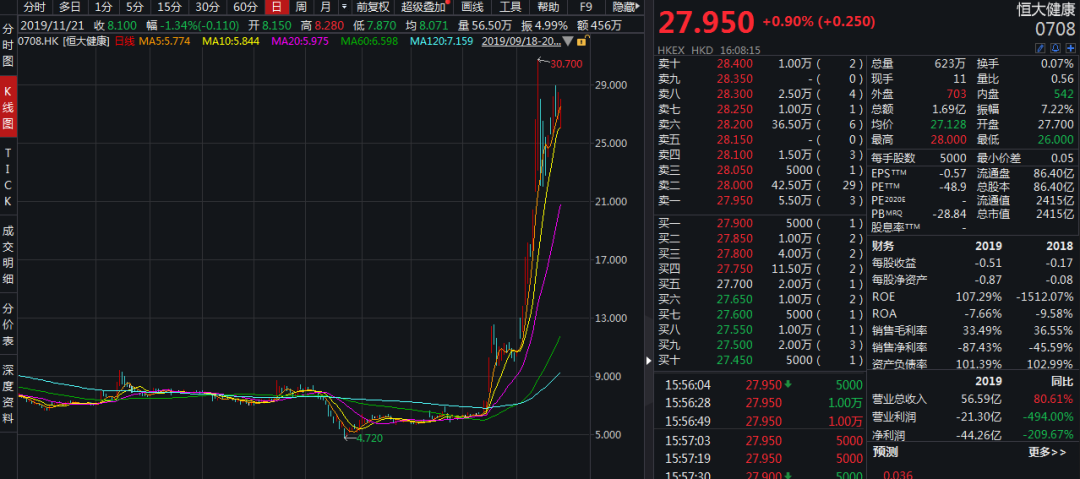 恒大健康今年也沾了新能源汽车产业的光,截至7月27日,收盘价格27.95港元/股,一个月来上涨近170%,今年以来涨幅更是达到253%。