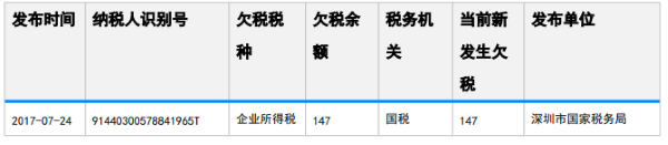 另外,天眼查披露了深圳市毅文医疗科技有限公司的欠税公告,公告显示,该公司欠税税种为“企业所得说”,欠税余额147(未披露金额单位),当前新发生的欠税余额147(未披露金额单位)。