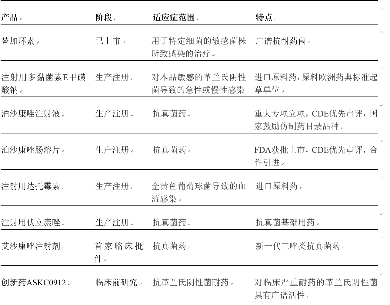 与此同时,奥赛康积极优化产业结构,在抗耐药菌感染和慢性病领域均有建树。公司从临床需求的角度出发,现已形成不同梯度、针对不同耐药菌感染的系列产品线布局(详见下表),将进一步巩固公司在耐药菌感染领域的地位,产生新的经济增长点。