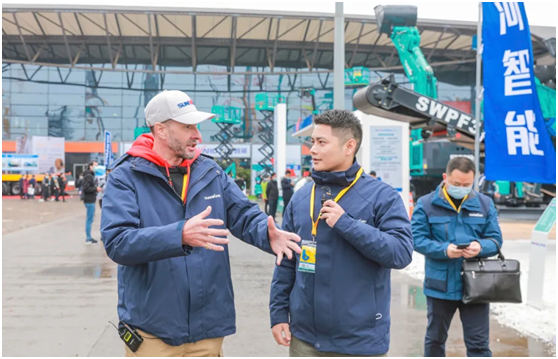 在会场中山河智能的外籍员工正在和国内员工交流(供图:山河智能)
