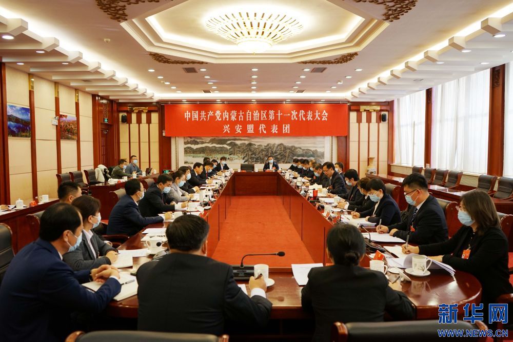 ↑中国共产党内蒙古自治区第十一次代表大会兴安盟代表团在讨论党代会报告 新华社记者侯维轶摄