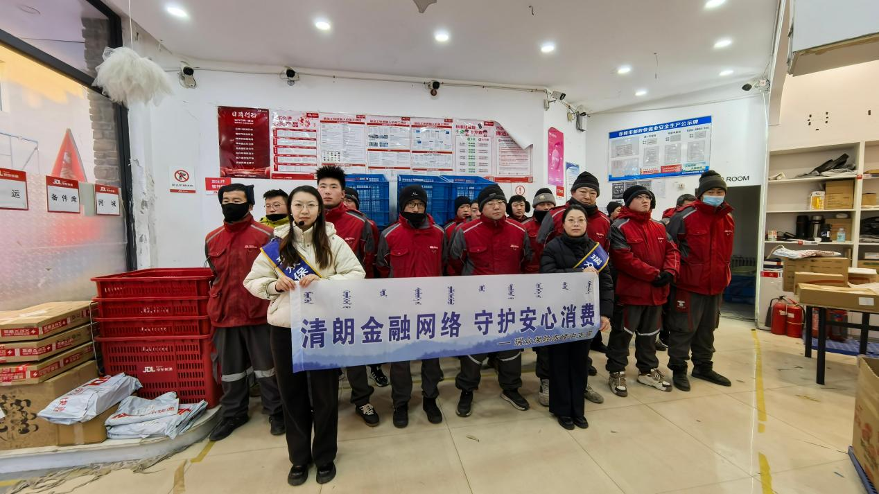 中国人寿财险呼伦贝尔市中心支公司扎兰屯支公司走进京东快递营业部开展“3·15”金融消保宣传活动