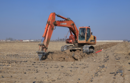 2月10日,记者在临河区城关镇继光村看到,多台大型机械在田间往来穿梭作业,一条条笔直的沟渠在平整的土地上逐渐成形。