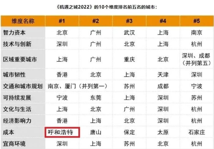 近日,在2022年中国国际服务贸易交易会上,普华永道与中国发展研究基金会联合发布了《机遇之城2022》报告。报告选取全国47座城市为观察对象,覆盖了多个主要城市群的中心城市。呼和浩特市总排名位居第44位,在10个维度的排名中,在“成本”方...
