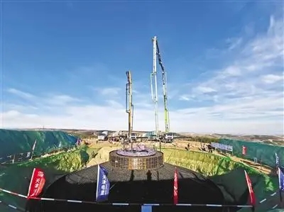 在位于和林县羊群沟乡的呼和浩特托克托新能源项目建设现场,机械轰鸣声此起彼伏,施工人员有序忙碌着,从风机基坑开挖、验槽、电缆管埋设到垫层浇筑,再到锚栓安装、钢筋绑扎、模板支设、混凝土浇筑,形成流水作业,现场道路施工、风机平台施工全面推进。