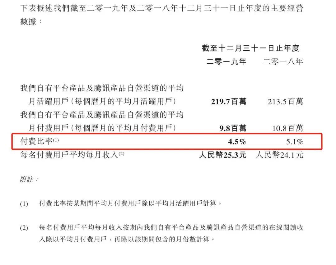 (阅文集团2019年付费用户及付费率同比2018年出现下滑)