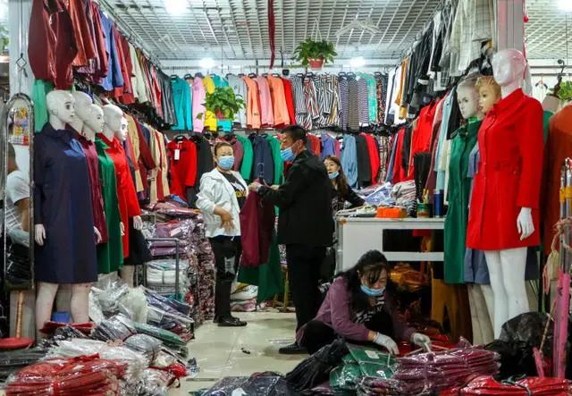 恒昌商场内商户正在为顾客找尺码合适的衣服