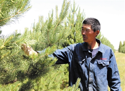 马云平指着背后成片的林子介绍说,每年起大苗和林间经济能为他带来近10万元的收入。除了经济效益外,更让这位63岁老人高兴不已的是,由于生态环境的持续好转,在他承包的林中还出现了泉眼,自然形成了小水泡子。马云平补充道:“绿水青山就是金山银山。”