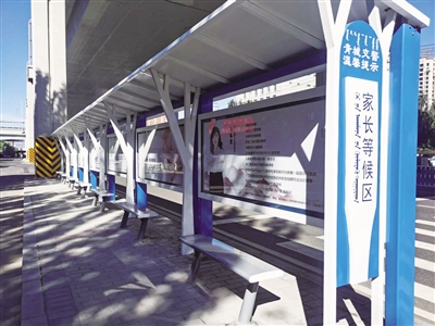 “家长等候区还有一排座椅,站累了可以坐会儿,既舒服又安全,也不用担心晒太阳和淋雨,太贴心了。”昨日,在新城区青山小学校门口附近新建的家长等候区,一名家长欣喜地说。