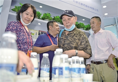 交易会上,我区文化旅游、电子商务、蒙医蒙药等领域的相关企业纷纷亮相。内蒙古参展商马苏乳业负责人介绍道:“策格疗法是自治区非物质文化遗产,首都的多家疗养院都在和我们洽谈,很快我们的产品会走进北京市场。”