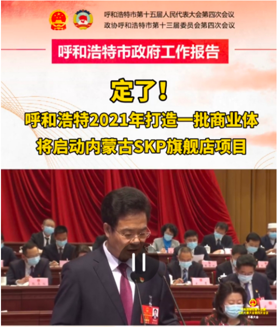 2月22日,呼和浩特在两会上官宣,呼和浩特新增一个高端商场——内蒙古SKP旗舰店,该项目位于呼和浩特市锡林南路与鄂尔多斯大街交汇处(就是原来的凯德MALL的位置),建设占地131亩,总建面50万平方米,投资总额约50亿。