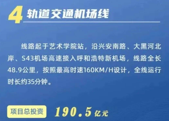 在呼和浩特市发改委公布的2023年十大重点项目中,呼和浩特轨道交通机场线作为“重量级”项目出现在了名单里。