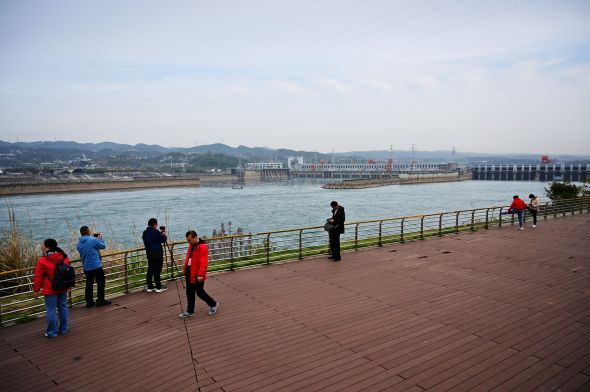 航拍师们在葛洲坝前进行地面拍摄 刘康 摄
