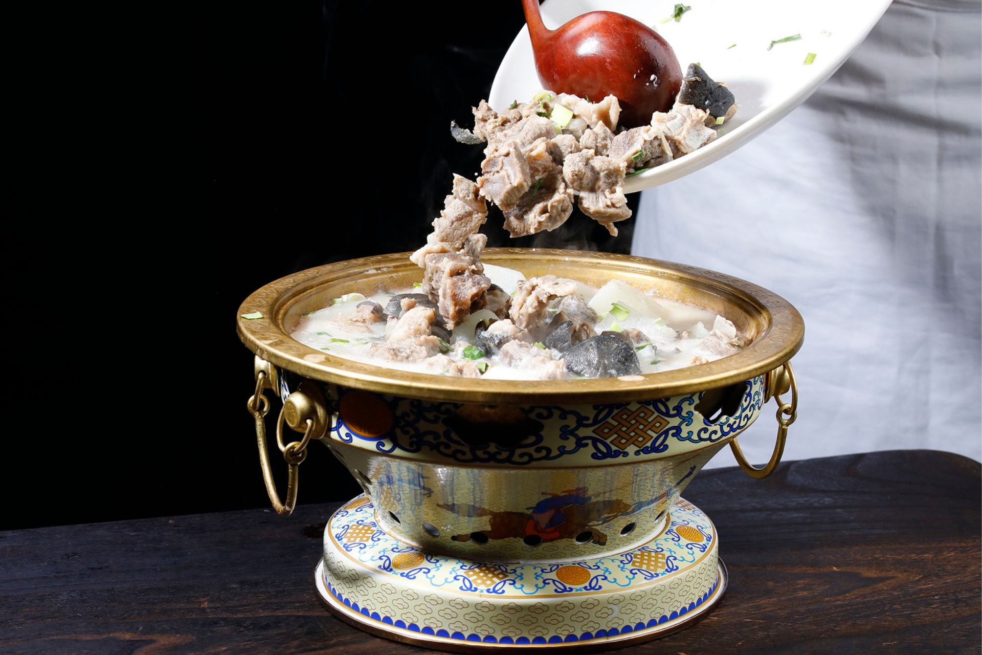 这道菜肴选用了锡林郭勒大草原珍稀“黄金羊”乌骨羊肉,肉质鲜嫩,口感细腻多汁,营养价值极高。独特的草原风情采用牧民传统方式烹饪,添加南方善用的当归食材,煲出别具一格的美味,使得这道菜成为一场美妙的味觉之旅,让人仿佛置身于辽阔的草原之上。