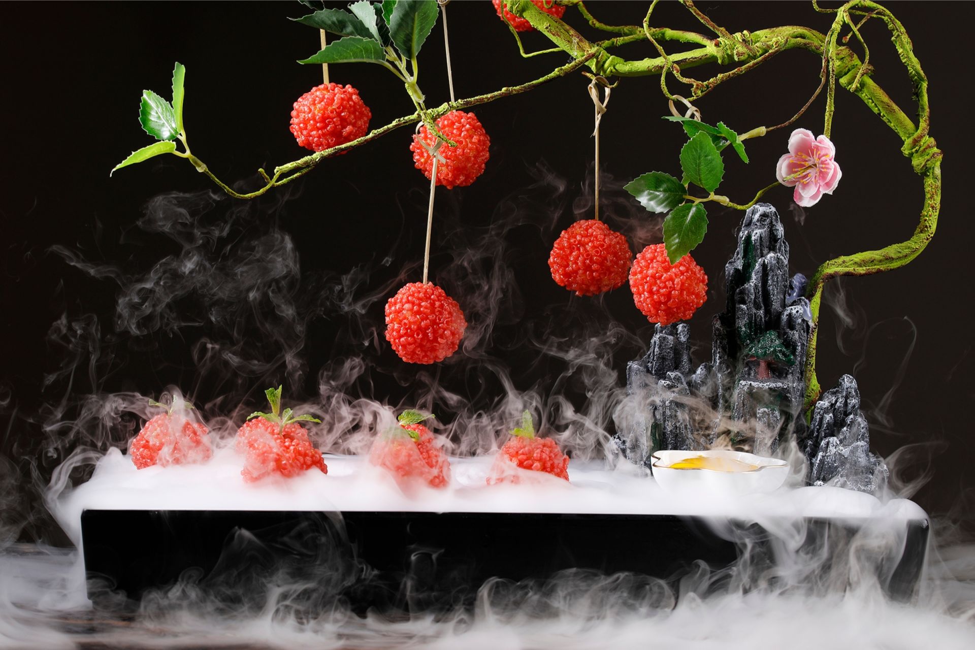 青山仙气飘飘撩人心弦,栩栩如生的荔枝悬挂在枝头,散发着浪漫香甜的气息,令人垂涎。摘下一粒酥脆可口,芝士内陷拉丝,一股甜蜜的芳香,沁人心脾。