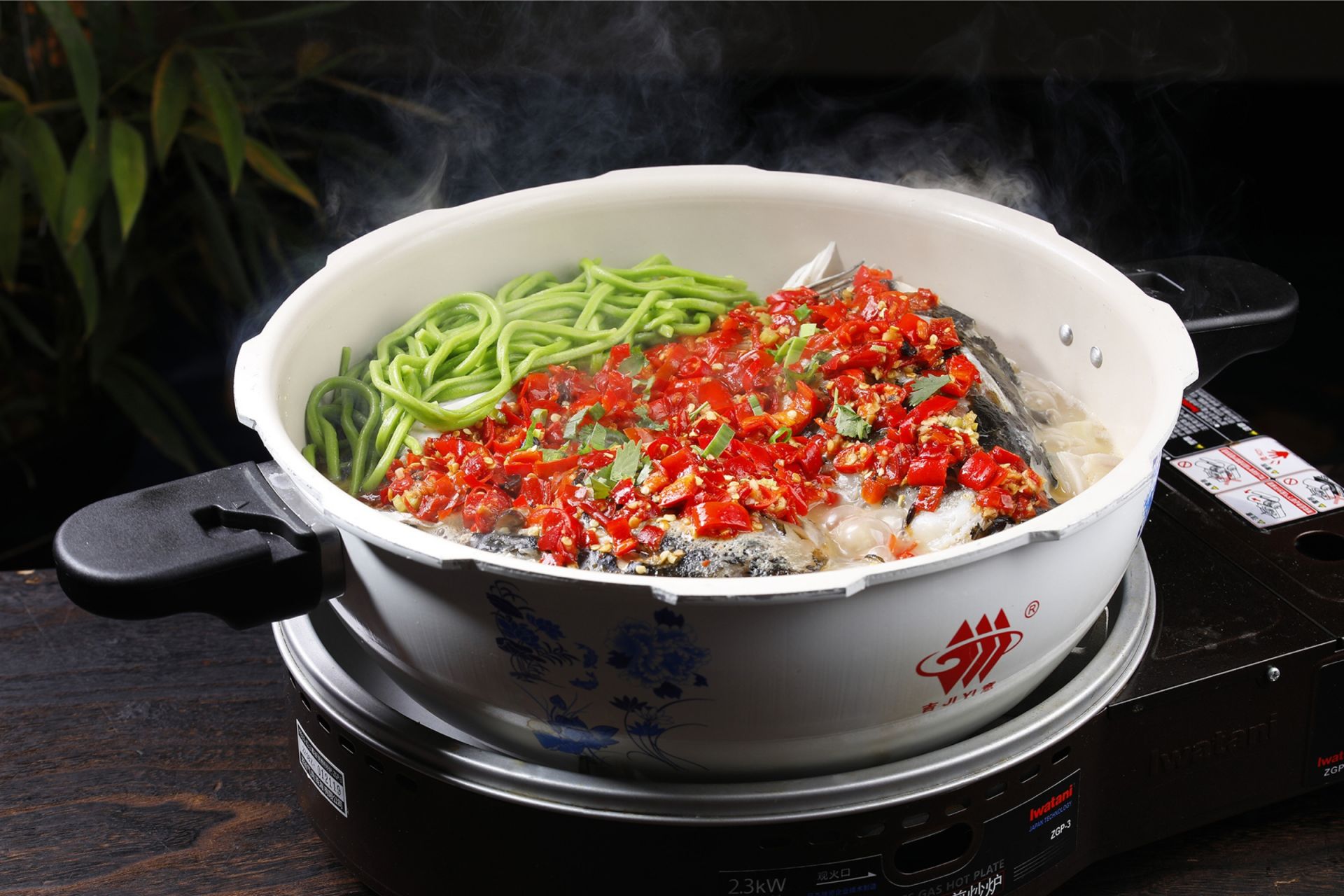 高压剁椒胖鱼头配手擀菠菜面