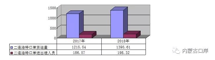 1-10月份,二连口岸进出口货物累计为1395.61万吨,同比增长14.81%。其中进口货物为1091.33万吨,同比增长12.15%;出口货物为304.28万吨,同比增长25.49%。二连口岸进出境人员为198.32万人次,同比增长6.30%。其中:入境人员99.18万人次,同比增长6.09%;出境人员为99.14万人次,同比增长6.51%。国际贸易“单一窗口”应用,1-10月份报关报检共计120805票,通过“单一窗口”申报67560票,使用达到55.92%。