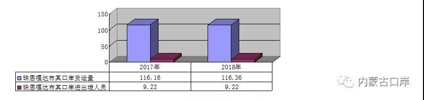 2017、2018年1-10月份珠恩嘎达布其口岸运量对比图(单位:万吨、万人次)