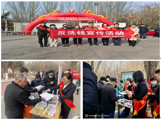3月15日上午邮储银行乌海市分行参加了人民银行乌海市分行、市公安局、乌海监管分局联合在公园北门小广场开展“铸牢中华民族共同体意识 激发消费活力 2024年3.15国际消费者权益日诚信宣传活动”,同时开展“反洗钱‘早春行’主题宣传。