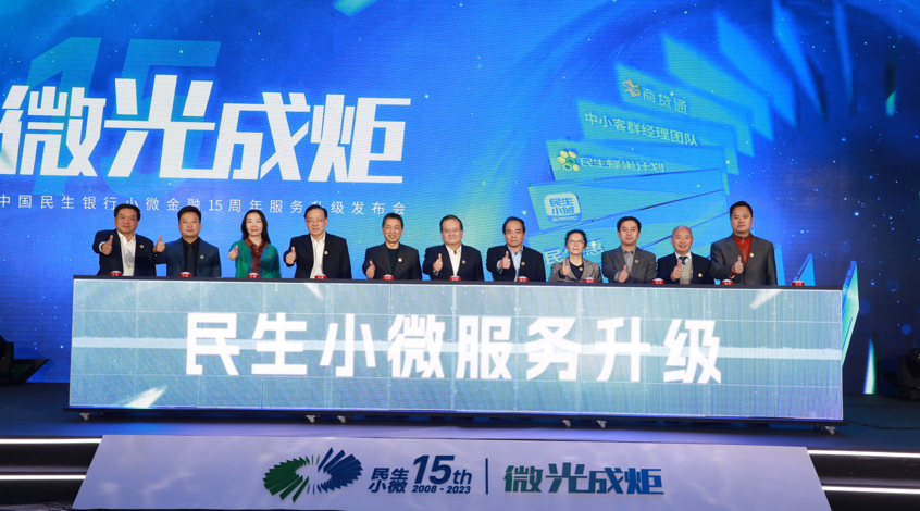 12月15日,民生银行以“微光成炬”为主题,在京举办“小微金融15周年服务升级发布会”。