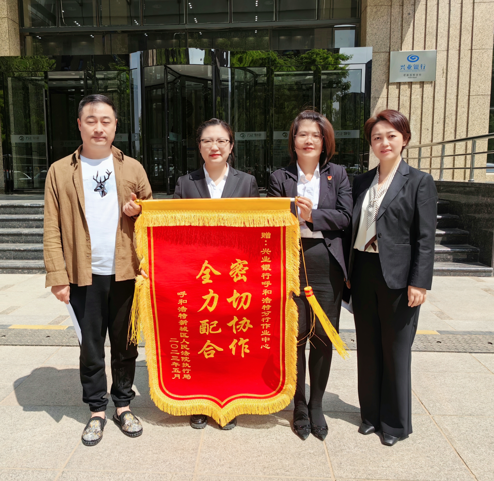 近日,兴业银行呼和浩特分行收到呼和浩特新城区人民法院执行局送来的一面写着“密切协作、全力配合”的锦旗,高度肯定赞扬该行多次认真高效协助司法机关完成查询扣划工作,实现零差错、零拖延,在司法机构侦破案件工作中发挥积极作用。