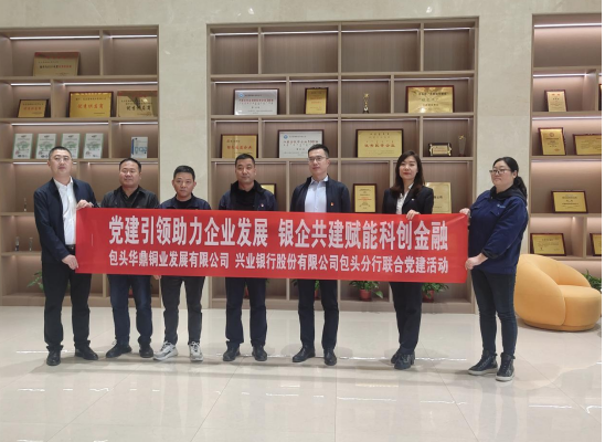 4月26日,兴业银行包头分行与包头华鼎铜业发展有限公司举行党建共建活动暨战略合作协议签约仪式。华鼎铜业总经理、震雄铜业副董事长袁俊智,兴业银行包头分行党委书记武晓平出席签约仪式并见签,华鼎铜业财务总监陈仓,兴业银行包头东亚世纪城支行行长张...