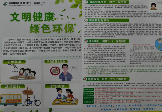 为进一步践行社会主义核心价值观,提高居民的文明素养,倡导文明健康绿色环保的生活方式,4月21日下午,邮储银行乌海市分行深入中孚人和小区践行社会主义核心价值观,开展“文明健康绿色环保-爱卫有我 健康生活宣传进社区”活动。