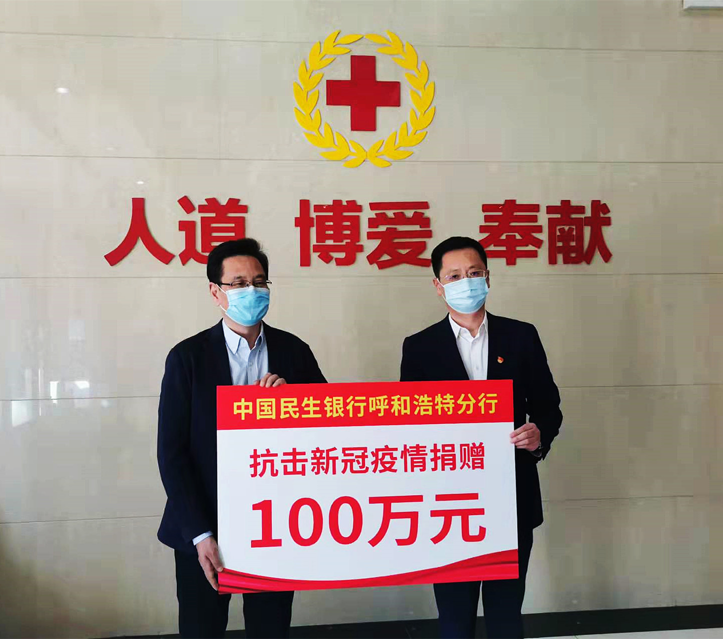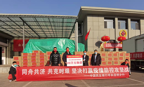 3月2日,中国民生银行呼和浩特分行向内蒙古红十字会捐款100万元,捐赠款项将专项用于呼和浩特、包头两地购置防疫物资。