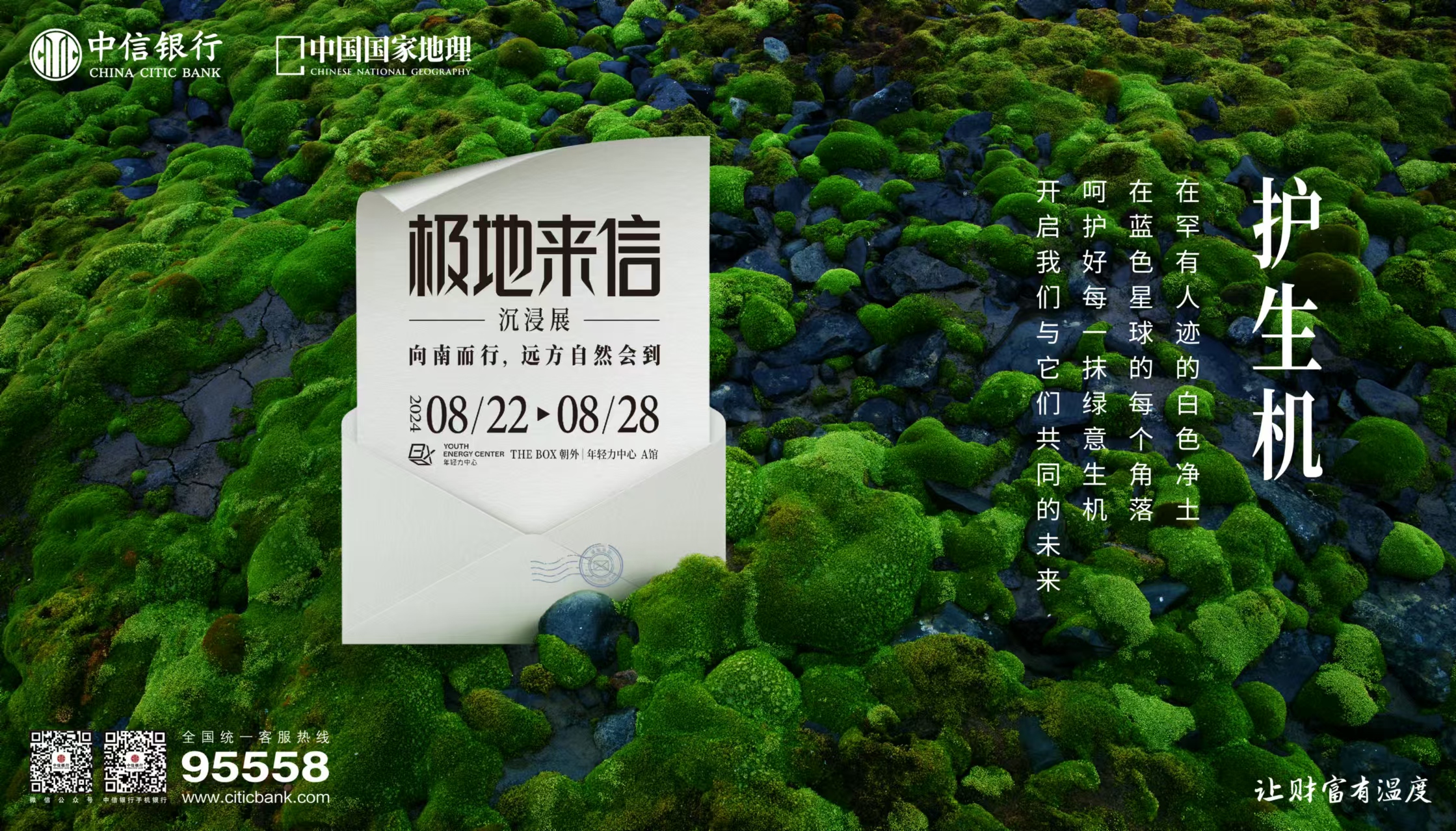 8月22日-28日,由中信银行与中国国家地理携手举办的“极地来信”沉浸展即将亮相北京THE BOX朝外 | 年轻力中心L1-L2,以沉浸式展览与艺术创意致敬中国极地考察40周年,礼赞“向南而行”的无畏精神。
