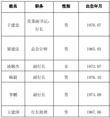 目前来看,这一正三副的行长配置均已到位,于建忠为行长,另外,凌颖杰、杨毅、李鹏为该行副行长,目前这四人的任职资格均已获得监管核准,值得注意的是,这四位新上任的高管均为“70后”。