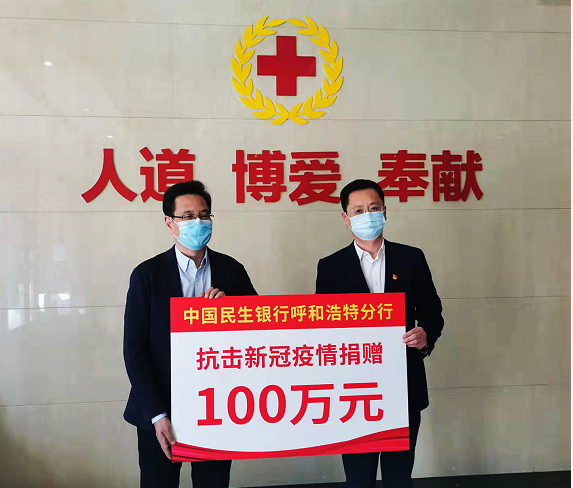 3月2日,中国民生银行呼和浩特分行向内蒙古红十字会捐款100万元,捐赠款项将专项用于呼和浩特、包头两地购置防疫物资。