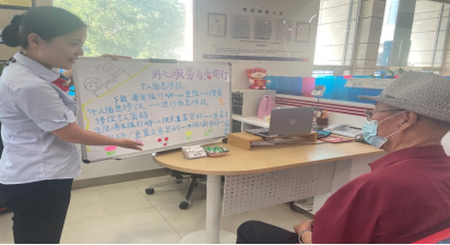 网点利用手写板为老年人制作了智能手机使用指南,切实解决了他们“不会用、看不清、找不到、打字难”等问题,银行工作人员详细给有需要的客户讲解手机银行使用技巧,线上线下一体化,助力老年人消除支付领域面临的“数字鸿沟”,进一步提升老年客户的金融服务体验。同时大堂经理在VTM自助设备上增设了“一键唤起人工客服”功能,及时发现问题解决问题,为老年人提供更贴心的专属服务。