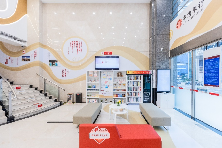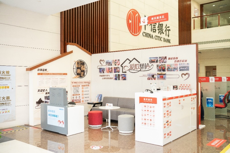 中信银行杭州分行舟山分行营业部将“温度”融入金融发展实践中,在厅堂打造“‘信’福助老”服务区;专配手语专员、盲文业务指南等助盲服务;在厅堂精心配置轮椅、免拨电话、助听器、老花镜、健康体验桌、无障碍ATM机、无障碍洗手间、无障碍网银体验机等10余种“关爱特殊人群”服务设施,为户外劳动者准备了爱心冰箱和保温箱。网点始终将高品质服务亮在一线,致力于打造“有温度”的银行。