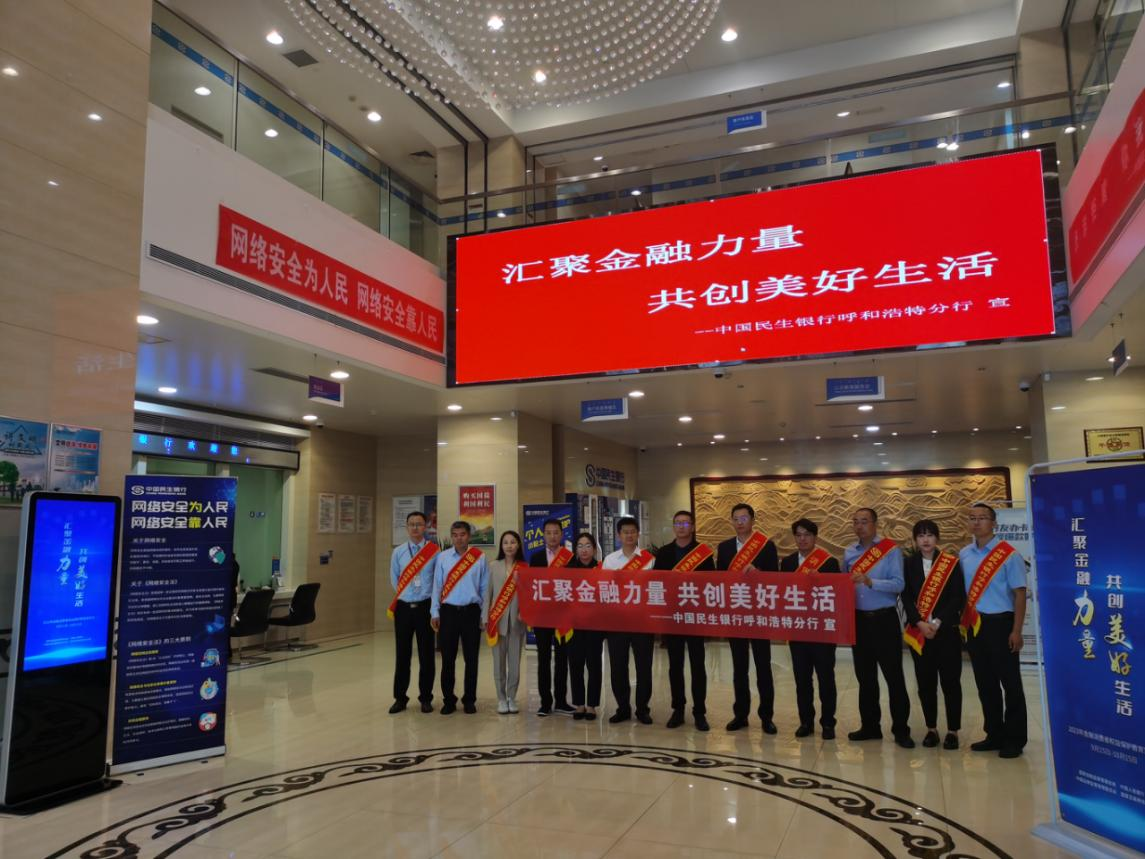 为切实提升社会公众金融素养,有效防范化解金融风险,营造和谐健康金融环境,9月15日,中国民生银行呼和浩特分行启动2023年“金融消费者权益保护教育宣传月”活动。本次活动以“汇聚金融力量 共创美好生活”为主题,面向金融消费者、投资者和广大网民深入宣传基础金融知识和风险防范技能,进一步增强金融消费者的风险识别能力和自我保护意识。