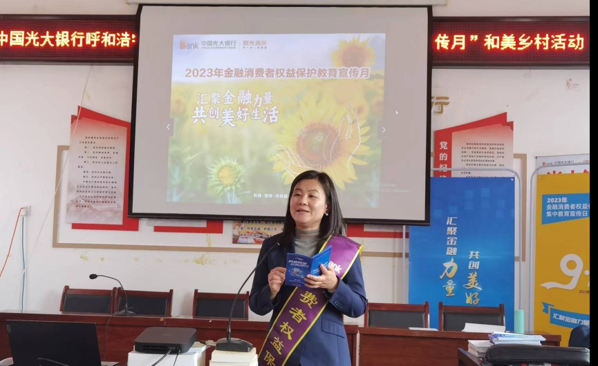 为积极贯彻落实中央以及监管部门工作要求,提高农村居民的金融素养,中国光大银行呼和浩特分行积极践行金融央企责任担当,深入乡村一线,通过加强乡村地区金融知识普及和消费者权益保护教育宣传,助力乡村地区金融环境改善,提高农村居民金融素养,营造全民学金融、懂金融、用金融的良好氛围,此次活动主要围绕“老年人防范诈骗-常见诈骗套路”、“信用卡安全用卡知识”、“存款保险-保护您珍贵的存款”等内容开展“阳光消保—乡村振兴有你有我”金融特色宣传教育活动。