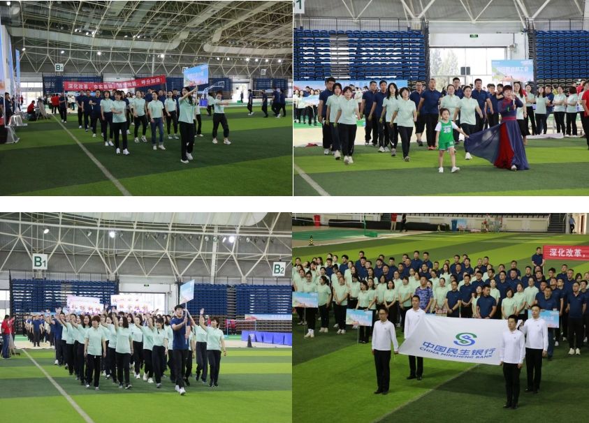 分行举办第六届职工趣味运动会,是学习贯彻主题教育和党的二十大精神的具体实践,把党中央全民健身的号召付诸在具体行动上,誓要以“更高、更快、更强”的目标,赛出风格,赛出水平,以优异的成绩展示民生人的精神风貌。工会主席、副行长代钦致开幕词,五位行领导共同按下活动启动键。