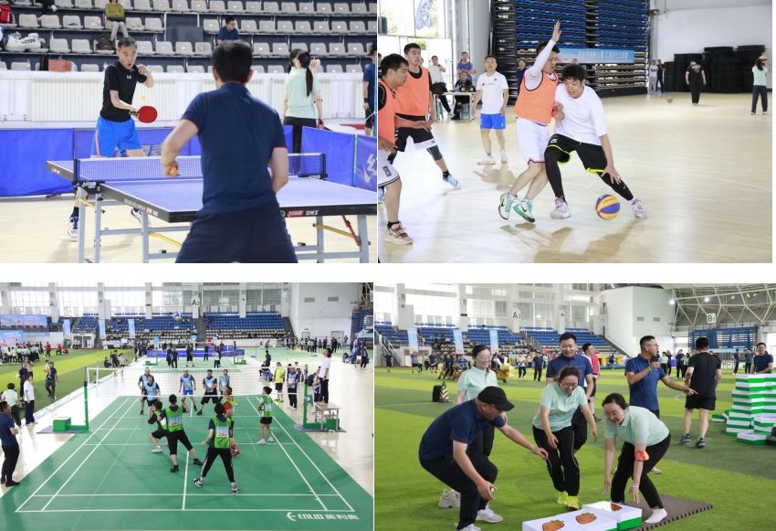 在比赛正式开始前,热身教练带领全体做热身操,活动筋骨,抖擞精神,引导大家进入比赛状态、为比赛蓄力。随后,各队伍分别进行了气排球、篮球、乒乓球、羽毛球等竞技项目和狼兔赛跑、羊了个羊、旱地龙舟、打地鼠等趣味项目的角逐。运动员以一往无前、奋勇争先的运动理念“过五关、斩六将”,顺利推进各项团队竞技有条不紊地进行,体现了民生运动员的智慧美、协调美、配合默契美和拼搏精神美。