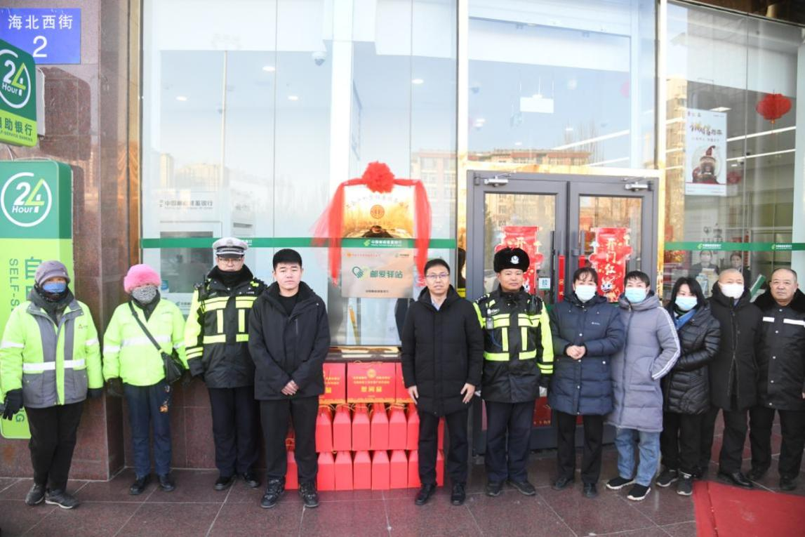 在揭牌仪式上,邮储银行乌海市分行副行长(工会主席)向长期坚持在一线工作的户外劳动者致以崇高的敬意和诚挚的问候,并将乌海市总工会关爱户外劳动者慰问品发放给交警、环卫工人、安保人员等户外劳动者,同时向参加揭牌仪式人员详细介绍了邮储银行乌海市市分行邮爱驿站的建设情况。大家纷纷表示“邮爱驿站”极大地方便了户外劳动者,是一个真正的暖心站。