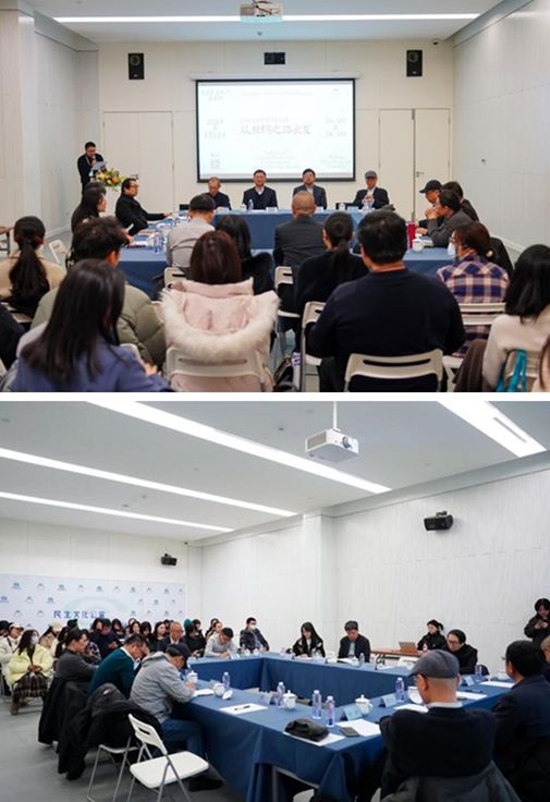 在开幕式后,丝路大展开幕圆桌论坛——从丝绸之路出发,也如期举行。论坛由北京民生现代美术馆理事长刘震子致开幕辞,北京大学博雅讲席教授、中国敦煌吐鲁番学会会长荣新江,北京大学考古文博学院教授、北京大学丝绸之路考古研究中心主任陈凌,澳门大学讲座教授、艺术与设计系主任李军,分别进行了主题发言。