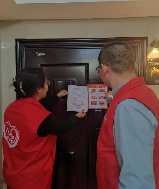 活动中,该行志愿者们对周边小区安全出口堆积杂物、疏散通道被占用、电动自行车违规上楼、乱停乱放及违规充电等行为进行劝导整改。为每户居民发放“消防安全须知”折页,引导提升小区居民的消防安全意识。