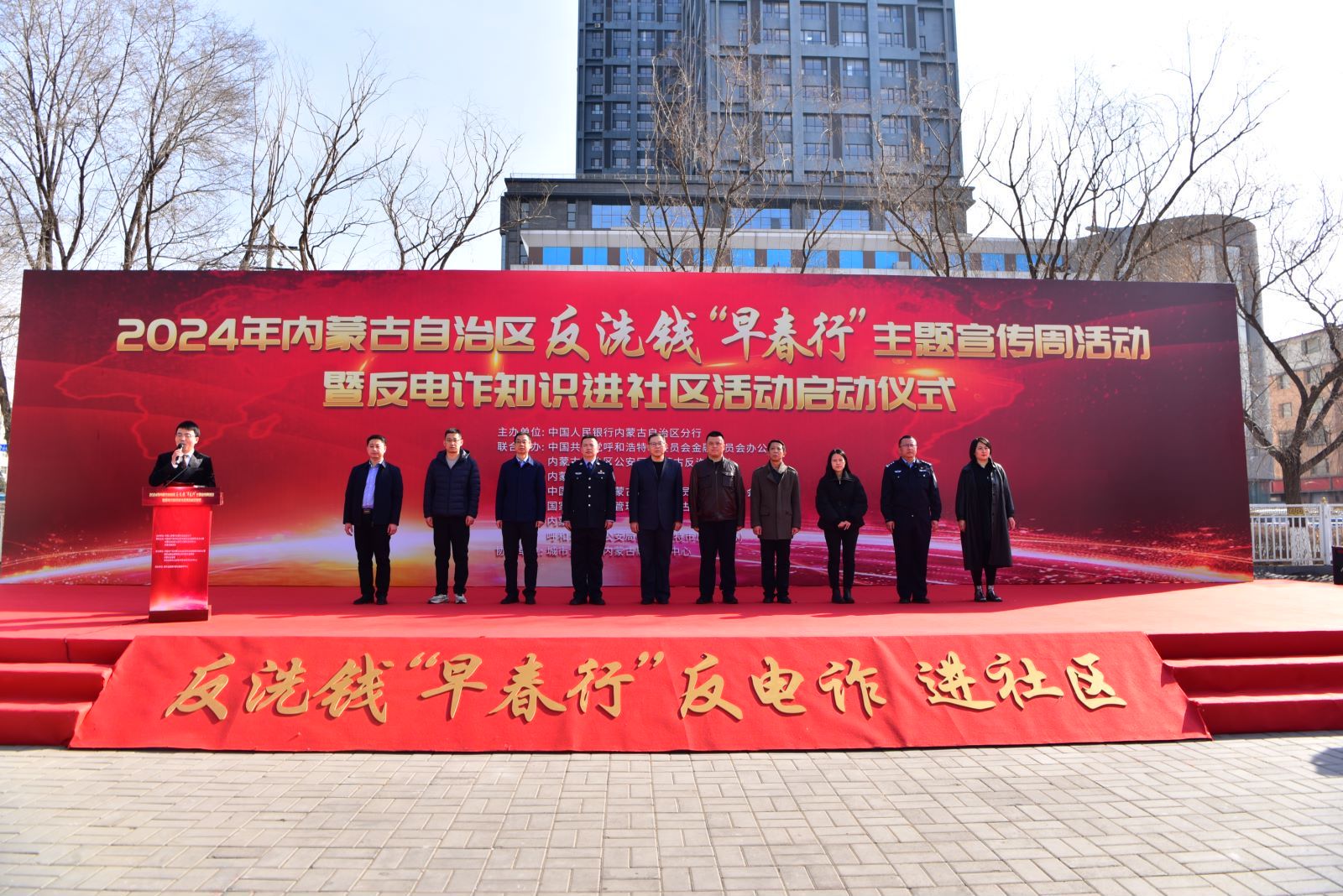 本次宣传活动借助“3·15”国际消费者权益保护日这一重要时间节点,联合内蒙古自治区公安厅、中共内蒙古自治区委员会金融委员会办公室、国家金融监督管理总局内蒙古监管局、内蒙古证监局等单位,围绕《反电信网络诈骗法》等法律法规,延续2023年反洗钱“一进校园”主题宣传活动影响力和辐射面,通过早春行——“二进社区”主题宣传周活动,进一步激发社会群众对反洗钱、反电诈、反网赌知识学习的积极性和主动性,切实提高全区民众防诈防赌意识和识诈识赌能力。