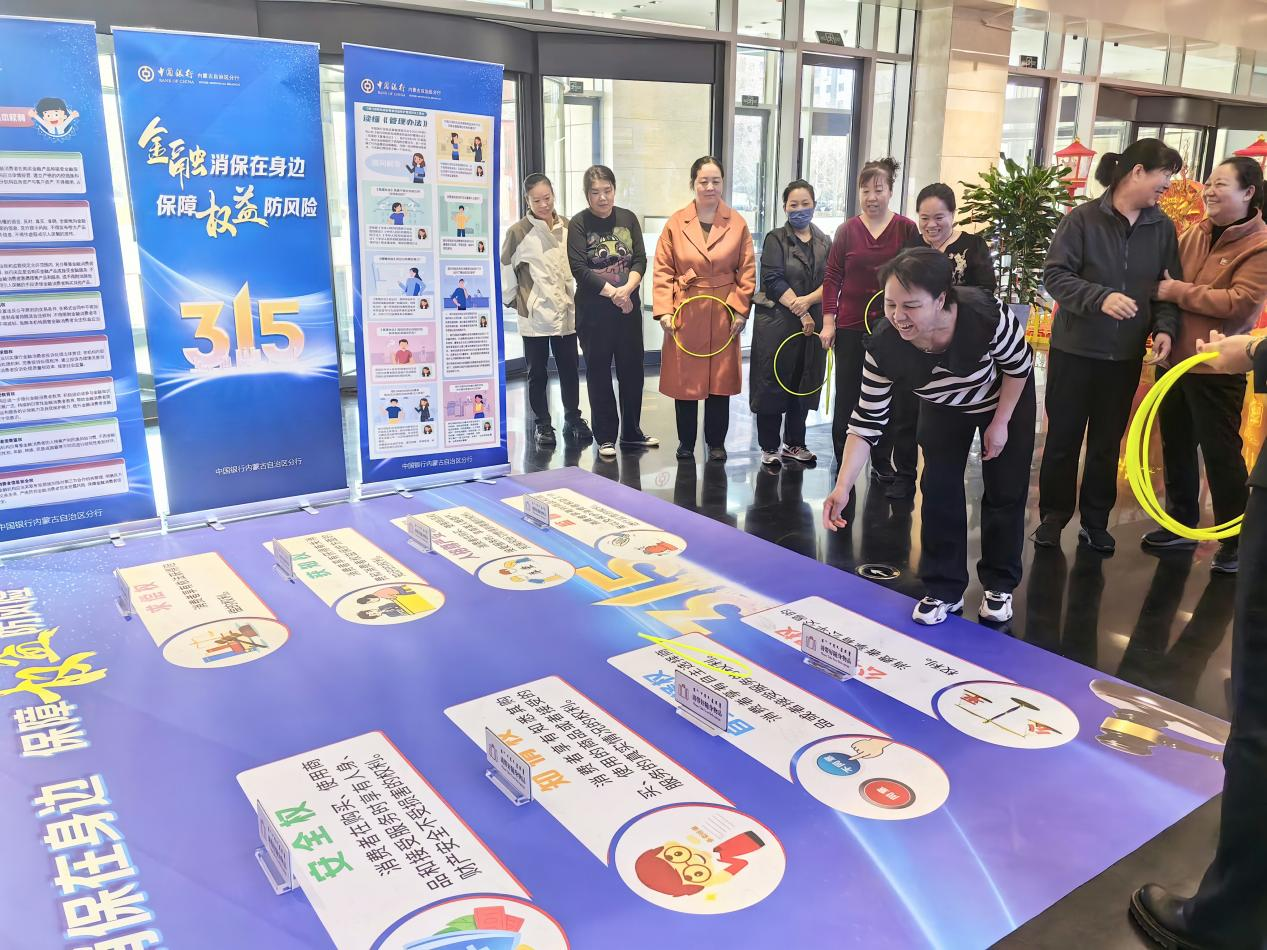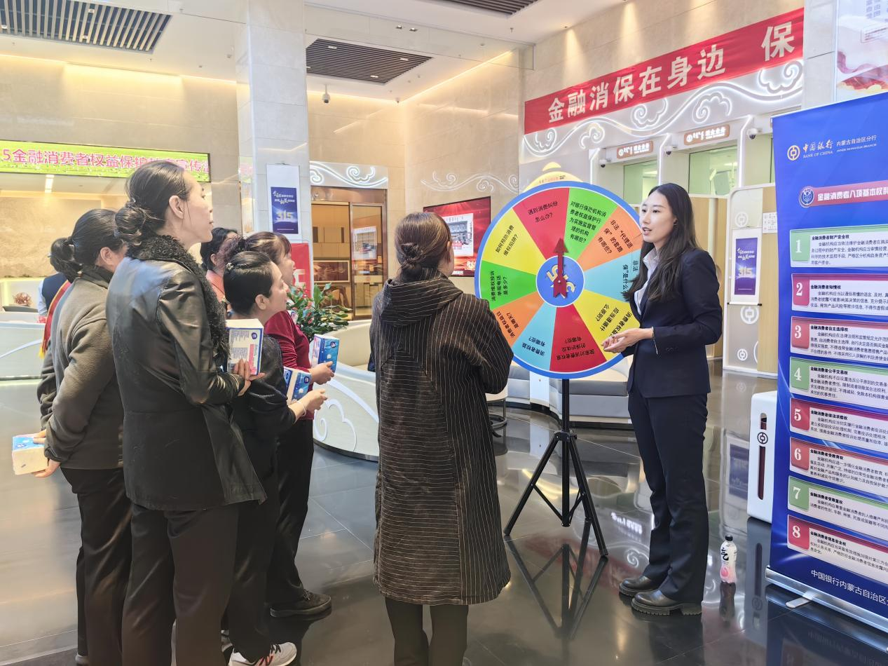 按照国家金融监督管理总局统一部署,中国银行内蒙古分行全面开展“3.15金融消费者权益保护”教育宣传活动,以“金融消保在身边 保障权益防风险”为主题,通过多形式、多渠道、多层级的宣传,增强人民群众金融服务的便利性、可得性和获得感。3月15日,中国银行内蒙古分行以网点厅堂为主阵地,举办金融知识普及宣传活动。